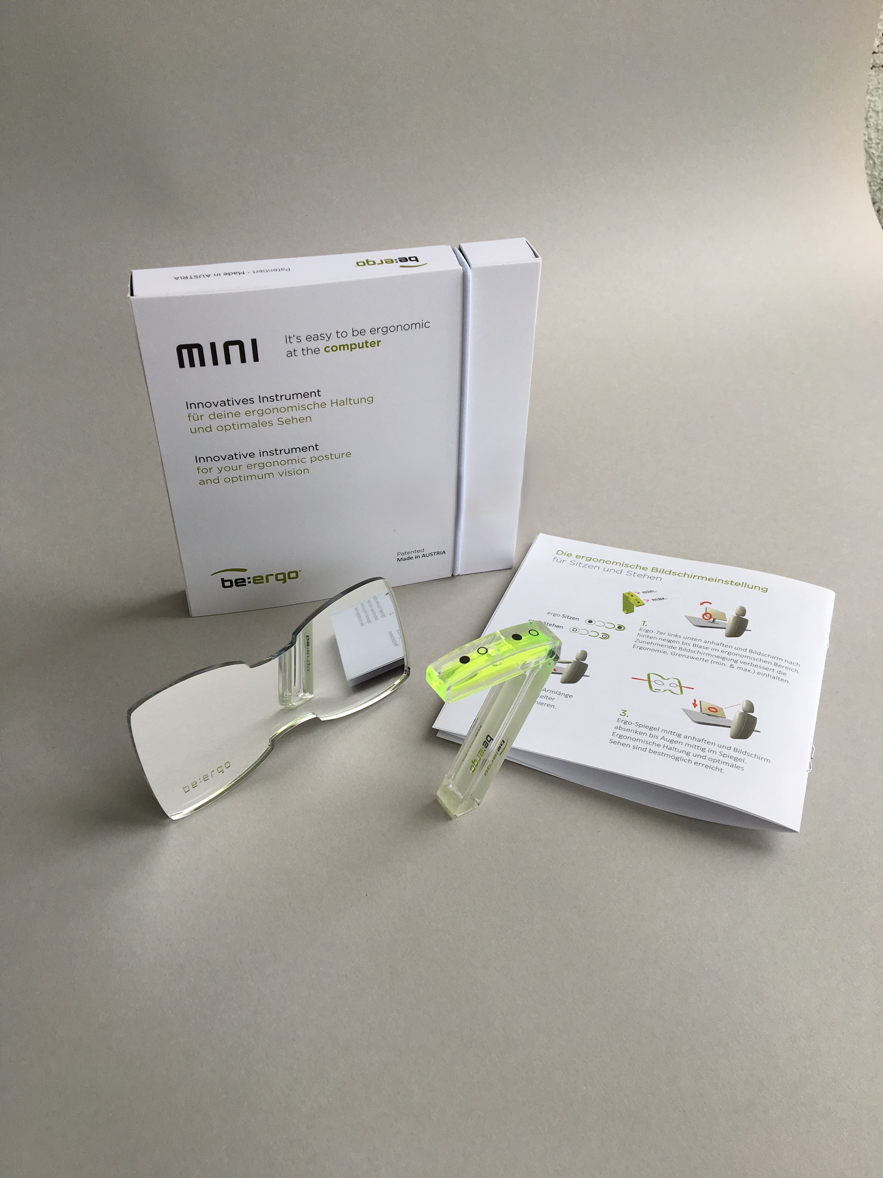 be:ergo MINI - das innovative Instrument für die regelmäßige gesunde Justierung von Bildschirm, Laptop und Tablet. Für mehr Wohlbefinden bei der täglichen Bildschirmarbeit.